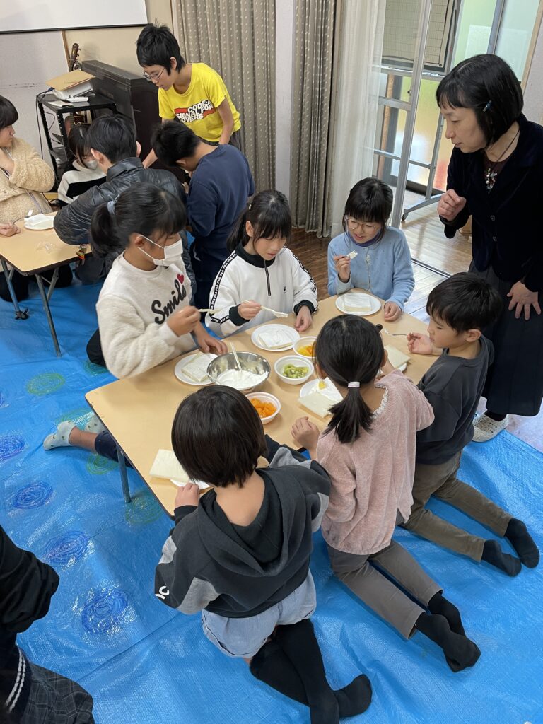 子どもクリスマス会は、終了しました。 2024.11.282025.12.30 11月30日(日) フルーツサンドを作って食べよう たくさんの子どもと保護者の方も来てくださりありがとうございました。 クリスマスのお話し みんなでゲーム、都道府県ビンゴ チームでがんばる フルーツサンドを作ってます。 まずは、生クリームを塗って、好きなフルーツをのせてね。